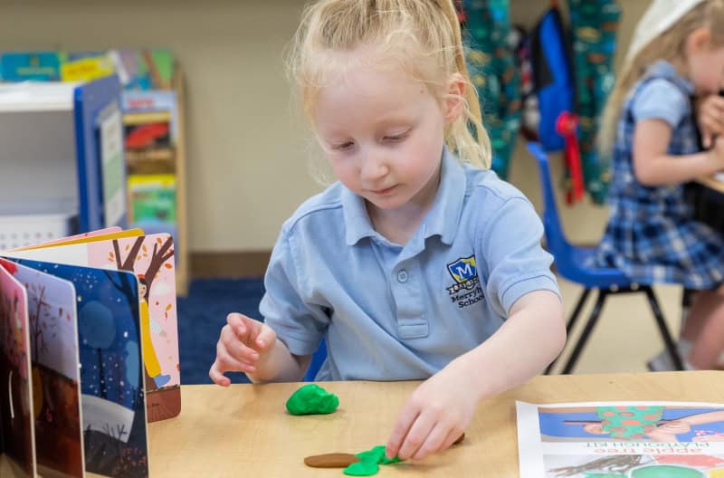 Preschool Curriculum Home / Academics / Preschool Curriculum The Perfect Balance of Learning and Play We believe that preschool is more than just learning isolated lessons. Our Links to Learning curriculum “links” multiple activities together, tailored to each child’s interests. Does your child like playing with blocks? Our teachers may ask her to build a tower while naming the colors and counting the blocks – linking language, math, and fine motor skills! Your child will build confidence, gain life skills, and have fun while they learn. We are more than a daycare. We provide a space for your child to thrive. Our child care program has six stages of age-appropriate learning and growth. From exploring the world around them to building early reading skills, we help students every step of the way. Contact Us The seven components of Links to Learning: Language & Literacy We inspire a love of reading and language by creating a literacy-rich environment that introduces children to a wide range of stories, letters, and words. Mathematical Thinking Children learn the foundations of addition, subtraction, and geometry, and learn different ways to compare quantities. Activities are designed to develop reasoning and problem-solving skills. Social-Emotional Learning Children recognize and label emotions, while learning how they fit into their community and the larger world. Teachers use problem-solving activities to develop children’s self-help skills. Wellness We help children develop fine and gross motor skills through dance, games, and physical activities. Basic nutritional and safety concepts are introduced to help children make healthy choices. Creative Expression We expose children to various music and art concepts, through vocabulary, discussions, and hands-on activities. Children practice self-expression as they engage in imaginative play. Scientific Exploration Children participate in hands-on science, engineering, and technology activities, while building important life including problem solving, collaboration, communication, analytical reasoning, and investigative thinking. Citizens of the World Our students learn about different places, people, and cultures. They discover traditions, holidays, and ways of life from around the globe, building respect and appreciation for diversity. Our students hear stories, try new foods, and sometimes even explore traditional clothing from other cultures. We integrate Spanish throughout the day to expose our students to a second language. Watch Your Child Grow With Us Slide 1 Slide 2 Intermediates Our Intermediates thrive in a classroom filled with exciting, hands-on activities that ignite their imagination and curiosity. Navigating social interactions is a vital part of our Intermediate program. Your child will practice taking turns, sharing, and understanding their own emotions, as well as those of their peers. We also take pride in beginning to foster a sense of appreciation for diversity in our three-year-olds. We encourage them to celebrate and demonstrate acceptance of people who are similar and different from themselves—laying the foundation for an inclusive outlook on the world. Pre-K Pre-K Our Pre-K program develops the strong social-emotional skills and etiquette necessary to ensure a successful transition to kindergarten. Your child will learn how to adhere to classroom rules, listen to their teacher and peers, show respect for others, and follow directions. They’ll be prepared academically by learning letter-sound relationships and sight words, practicing addition and subtraction, and exploring maps and globes. They’ll use scientific inquiry to participate in fun experiments and explore imaginative play related to personal experiences, literature, and interests. Intermediates Family Communication We know that aside from extraordinary curriculum and caring teachers, communication is one of the most important factors when choosing a preschool. Not only is communication with your child’s school important, but in today’s busy world, it can feel overwhelming to stay on top of what your child is learning. Our teachers and administrators strive to make communication as seamless as possible – giving you one less thing to worry about!