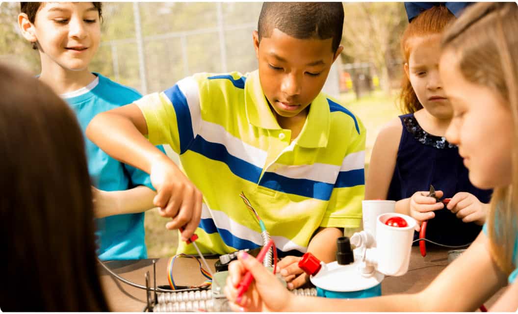School Age Care Home / Programs / School Age Care Learning and Fun Continue Beyond the School Day Our school offers solutions that busy working families need. In our before and after school program, children ages 5 to 12 have fun with sports, games and arts and crafts, as well as getting a head start on homework. The Five Subject Areas of Our Program: Discover Our students dive into the world of science, technology, engineering, art, and math (STEAM) with building projects, experiments, and fun design challenges. We ask them to share ideas, ask questions, and make predictions! Play Outdoor play and games help our students learn teamwork while building strength and endurance. They also practice critical thinking and solving problems by playing board games and doing team challenges with friends. Create Our students express themselves through art activities such as taking photos, drawing, and painting. They learn to plan by working on projects with friends. Students can also join group performances or discussions. Wonder We nurture social and emotional growth through activities led by both students and teachers. Our students get a chance to apply problem-solving skills and work with their friends. Learn Some students enjoy quiet activities or study time after a long day at school. We provide a calm place to do homework, read, journal, or get help from peers and teachers. They can also work on projects in this small group setting.